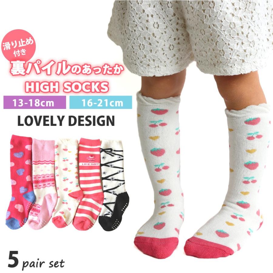 靴下 キッズ 女の子 あったか 裏パイル ハイソックス ラブリーデザイン 5足セット 13 18cm 16 21cm 送料無料 防寒 ハートやリボンがかわいい プリンセス Kid 靴下専門店 ソックスbox408 通販 Yahoo ショッピング